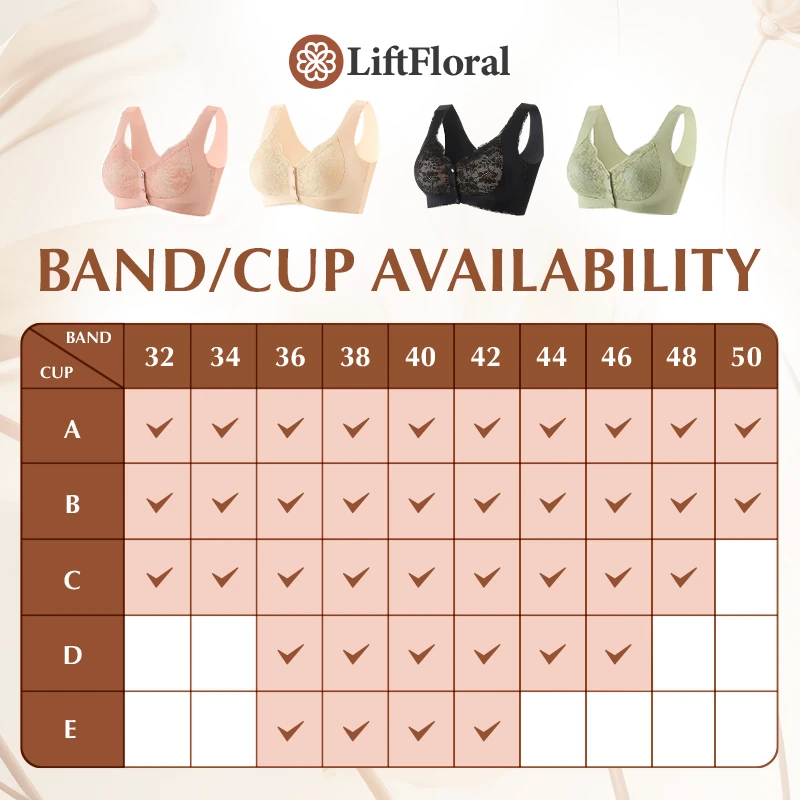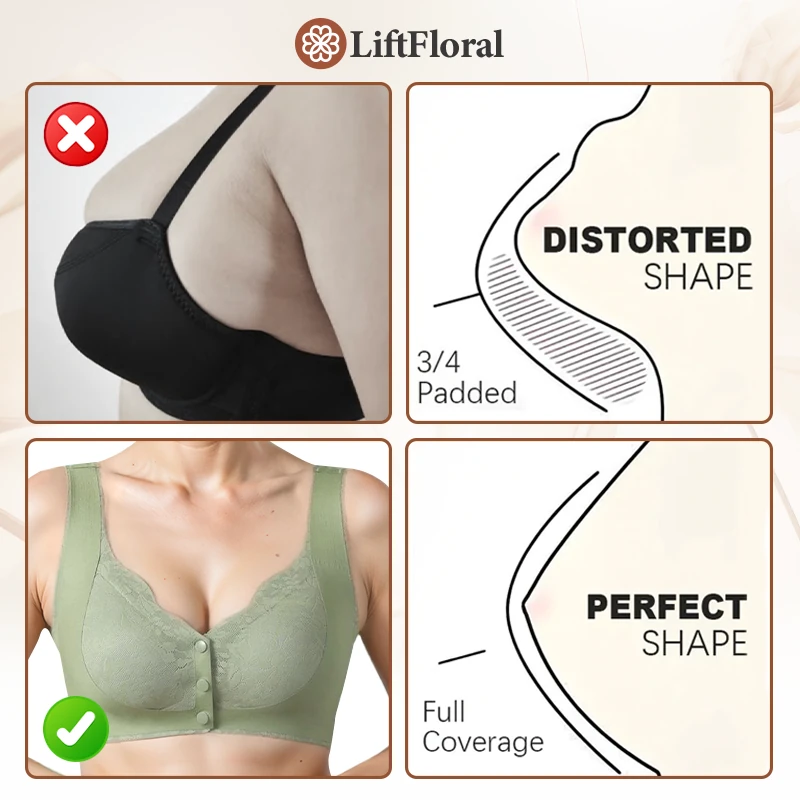 LiftFloral's quick snap front closure makes putting on and taking off your bra a breeze. Say goodbye to awkward positions and free up your hands with this convenient design.